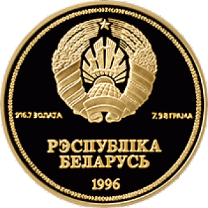 В центре расположено рельефное изображение Государственного герба Республики Беларусь, под ним – надпись в две строки: "РЭСПУБЛIКА БЕЛАРУСЬ", указан год чеканки, для монет из драгметаллов – масса драгметалла в чистоте и проба сплава.
