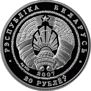 В круге, обрамленном геометрическим орнаментом, – рельефное изображение Государственного герба Республики Беларусь, под ним – год чеканки (на золотой и серебряной – проба сплава); по кругу надписи: вверху – РЭСПУБЛІКА БЕЛАРУСЬ, внизу – 100 РУБЛЁЎ (на золотой); 20 РУБЛЁЎ (на серебряной); 1 РУБЕЛЬ (на медно–никелевой).
