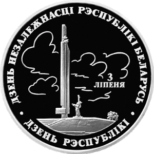 В центральной части – рельефное изображение обелиска "Минск – город–герой"; в правой – надпись в две строки: "3 ЛIПЕНЯ"; по кругу – надписи: "ДЗЕНЬ НЕЗАЛЕЖНАСЦI РЭСПУБЛIКI БЕЛАРУСЬ" и "ДЗЕНЬ РЭСПУБЛIКI".