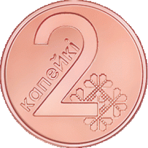 Реверс: в центре цифровое обозначение номинала – 2, слева от цифры вертикально расположена надпись – КАПЕЙКI, справа – стилизованное изображение национального орнамента.